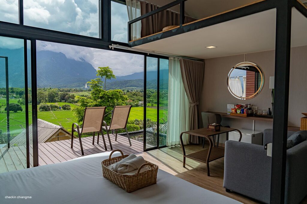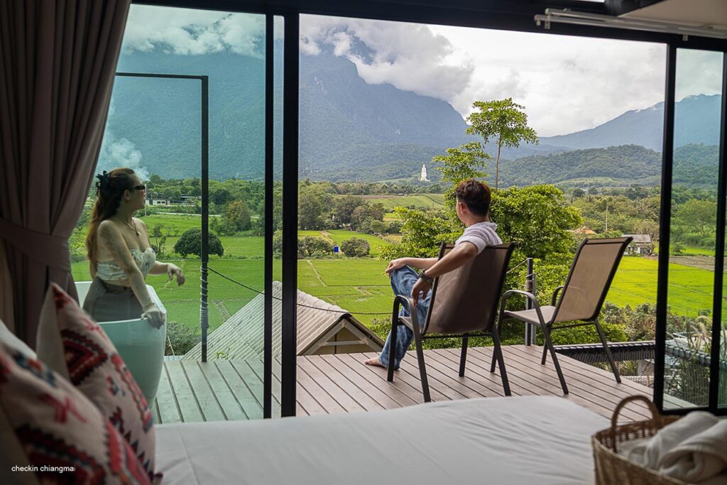 จุดเด่นที่สุดที่หาจากที่ไหนไม่ได้ คือการมองเห็นวิวดอยหลวงเชียงดาวได้อย่างชัดเจนเต็มตา ไม่ว่าจะอยู่มุมไหนของรีสอร์ท คุณจะได้สัมผัสกับความยิ่งใหญ่ของภูเขาหินปูนที่สูงเป็นอันดับ 3 ของไทย โดยเฉพาะช่วงเย็นที่แสงอาทิตย์ค่อยๆ ลับขอบฟ้าหลังแนวสันเขา เป็นภาพที่ประทับใจไม่รู้ลืม