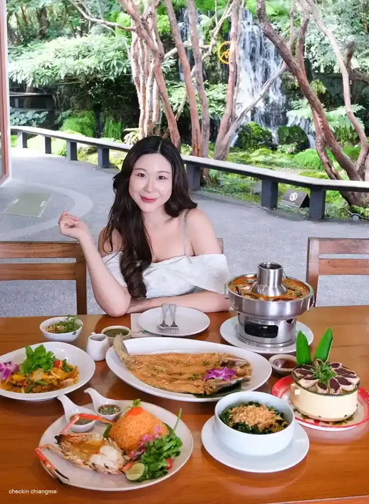 ร้านนี้ไม่ใช่เป็นเพียงแค่ร้านอาหารหรือคาเฟ่เชียงใหม่ทั่วไป แต่คือพื้นที่แห่งการพักผ่อนใจกลางสวนสวยที่เขียวชอุ่มและชุ่มฉ่ำ ตั้งแต่ก้าวแรกที่เดินเข้าไป คุณจะรู้สึกราวกับได้หลุดเข้าไปในโลกแห่งป่าฝนขนาดย่อม ที่รายล้อมไปด้วยมอสส์นานาพันธุ์ ไม้ฟอกอากาศ ไอหมอกที่โปรยปรายลงมาเป็นระยะ และเสียงน้ำตกที่ช่วยสร้างบรรยากาศอันแสนผ่อนคลาย ทำให้ที่นี่เป็นสถานที่สุดพิเศษสำหรับการพักผ่อนอย่างแท้จริง