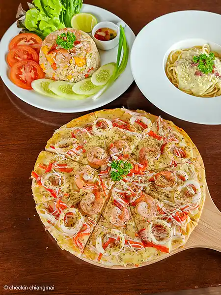 - เมนูอาหาร: ข้าวผัด, สปาเกตี้ และพิซซ่า