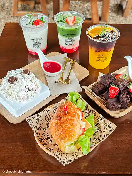 มีบริการทั้งอาหารและเครื่องดื่ม เมนูแนะนำคือ ข้าวผัด, สปาเกตี้, พิซซ่า และนมสดสตรอว์เบอร์รี่