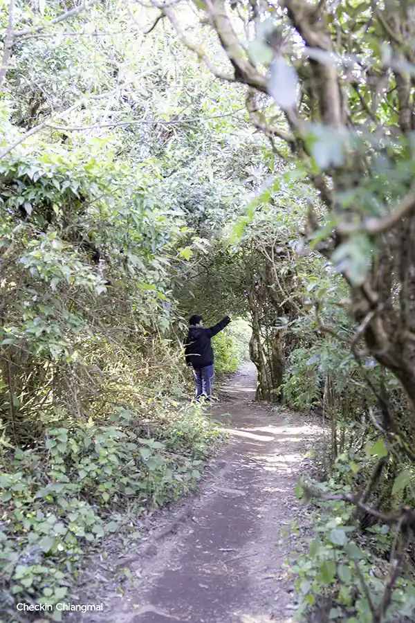 ทีมงาน Checkin Chiangmai ใช้เวลาเดินจริงประมาณ 3 ชั่วโมงเต็ม เพราะเน้นเก็บภาพบรรยากาศอย่างละเอียด ในการสำรวจล่าสุด เราพบความตื่นเต้นเล็กน้อยเมื่อมีสัตว์ป่าวิ่งตัดหน้าทีมงานอย่างกระชั้นชิด คาดว่าเป็น “เก้ง” (Barking Deer) ซึ่งยืนยันได้ว่าป่าแห่งนี้ยังคงความสมบูรณ์และเงียบสงบมาก