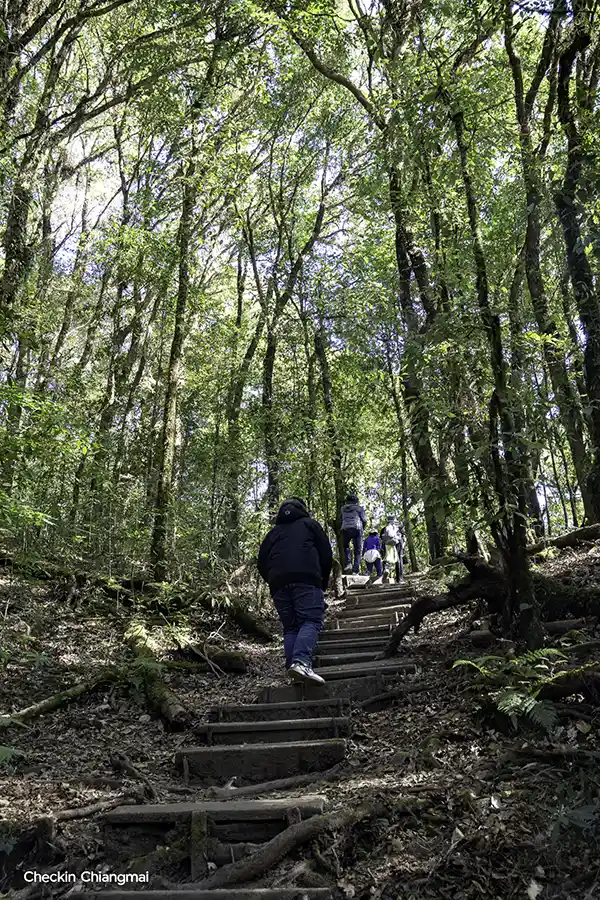 1. ป่าดิบชื้น (Cloud Forest): ช่วงเริ่มต้นที่เต็มไปด้วยมอสและเฟิร์นเขียวชอุ่ม เกาะแน่นตามลำต้นไม้ใหญ่ ให้ความรู้สึกเหมือนเดินในป่าดึกดำบรรพ์ แสดงถึงความอุดมสมบูรณ์สูงสุด