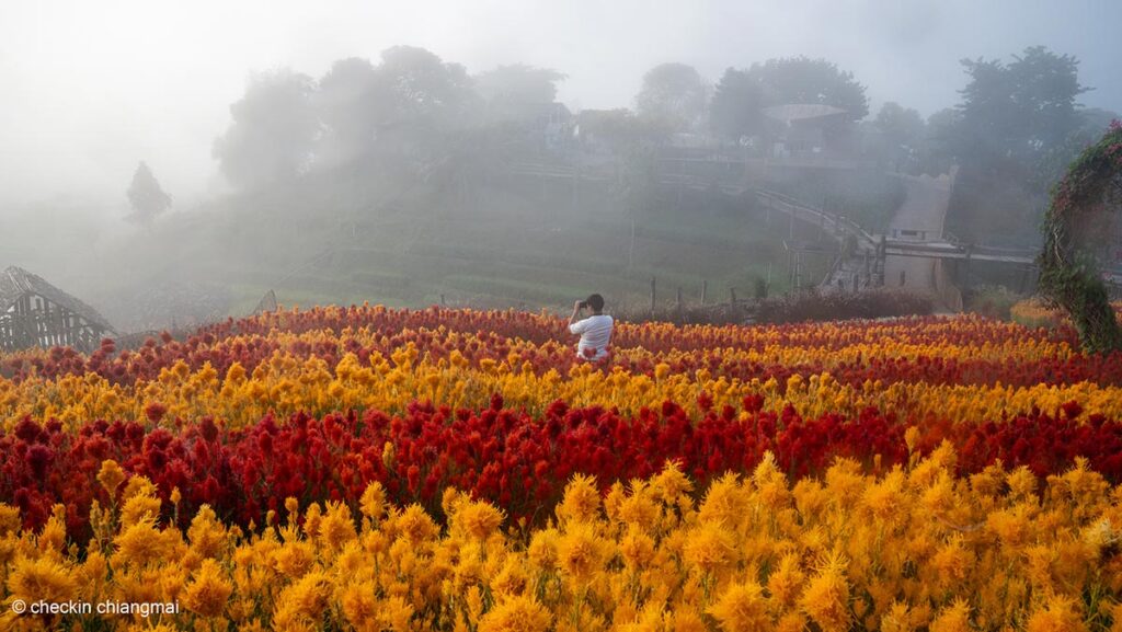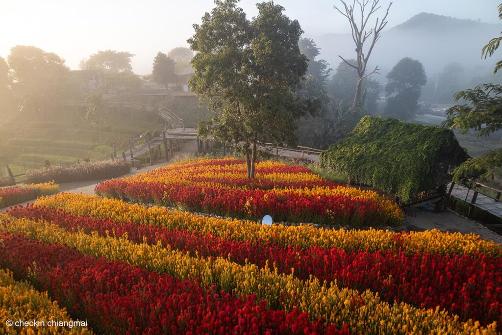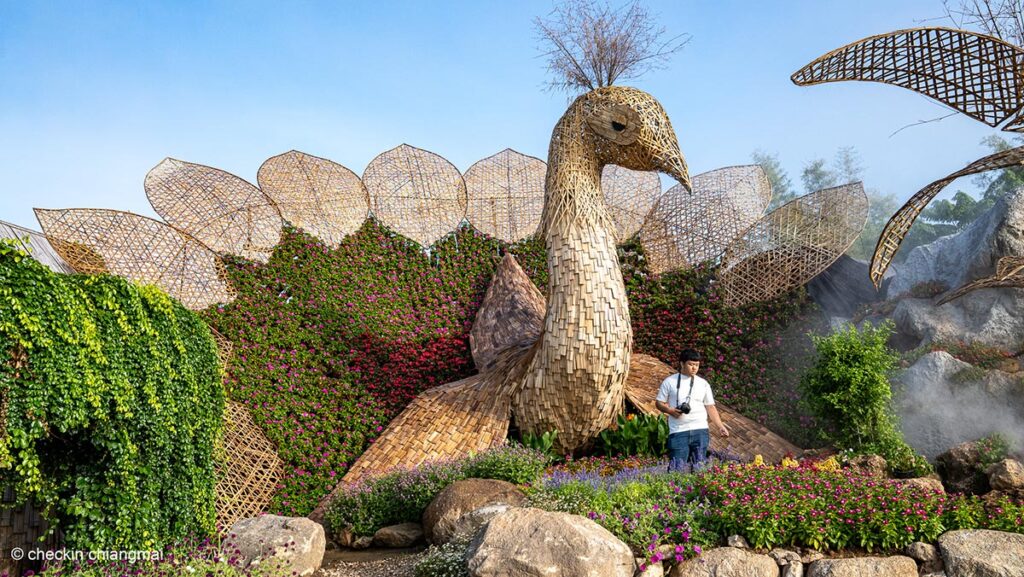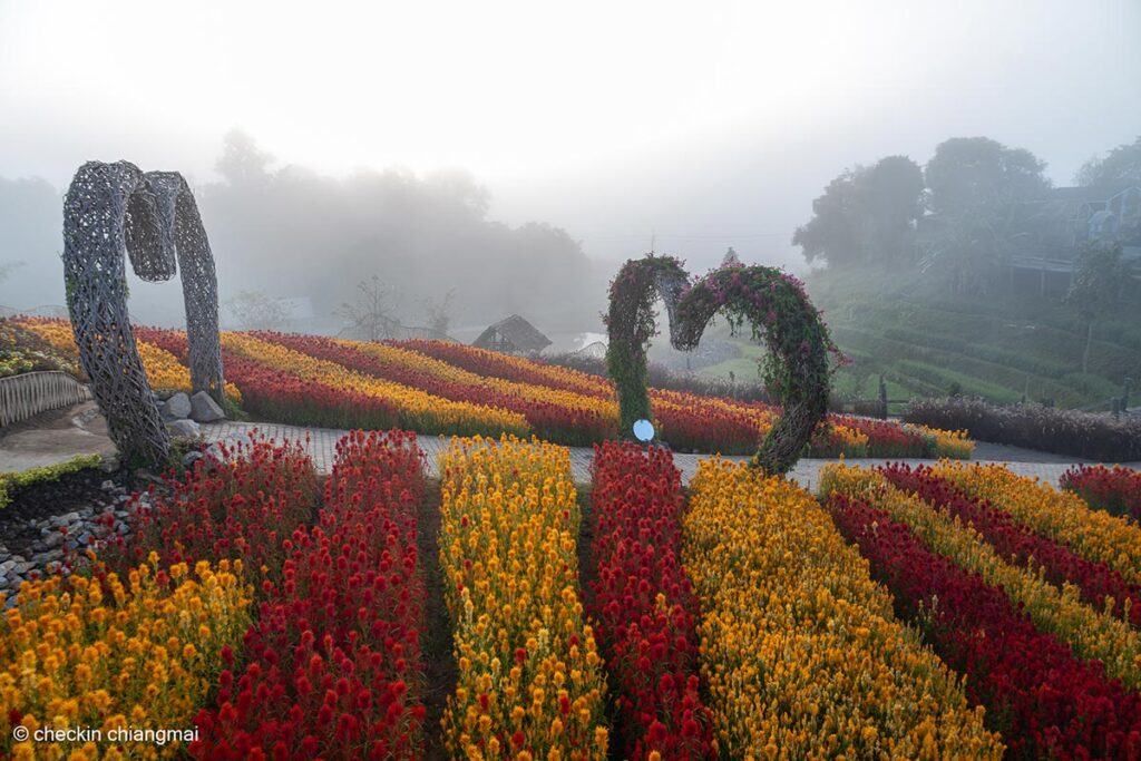 พาไปเช็คอินสวนสวยท่ามกลางขุนเขาและธรรมชาติ พร้อมมุมถ่ายภาพใหม่สุดละมุน ปีนี้มาในคอนเซปต์ “สวนแห่งชีวิต…ผืนดินแห่งโอกาส” ที่อบอวลด้วยความอบอุ่นจากศิลปะ ธรรมชาติ และภูมิปัญญาท้องถิ่น เดินเข้าไปแล้วจะได้พบกับซุ้มไม้ไผ่ทรงดอกเห็ด นาขั้นบันได และภูเขาดอกไม้หลากสี ท่ามกลางขุนเขาตระหง่านอยู่ตรงหน้าอย่างสวยงาม