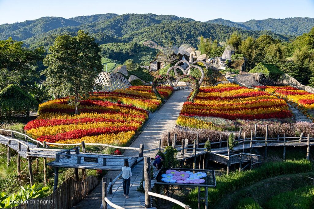พาไปเช็คอินสวนสวยท่ามกลางขุนเขาและธรรมชาติ พร้อมมุมถ่ายภาพใหม่สุดละมุน ปีนี้มาในคอนเซปต์ “สวนแห่งชีวิต…ผืนดินแห่งโอกาส” ที่อบอวลด้วยความอบอุ่นจากศิลปะ ธรรมชาติ และภูมิปัญญาท้องถิ่น เดินเข้าไปแล้วจะได้พบกับซุ้มไม้ไผ่ทรงดอกเห็ด นาขั้นบันได และภูเขาดอกไม้หลากสี ท่ามกลางขุนเขาตระหง่านอยู่ตรงหน้าอย่างสวยงาม